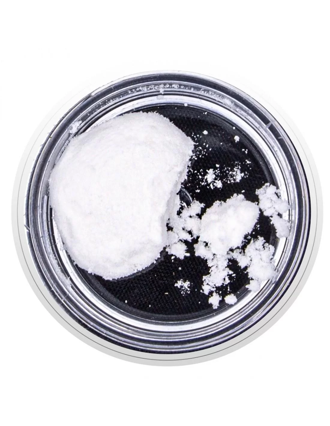 Das Produkt erscheint als weißes Pulver aus 99% reinen CBD-Kristallen, mit nur 1% anderen Wirkstoffen wie Terpenen.
