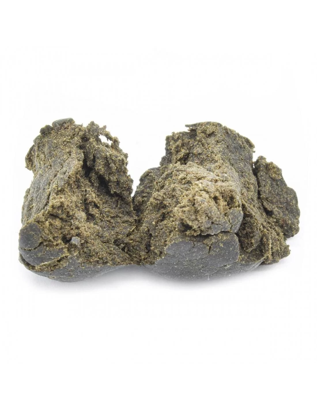 Una pequeña bola de color oscuro, y tan brillante que desde luego no pasa desapercibida. Se obtiene frotando las inflorescencias con trabajo manual, y compactando la resina para darle la típica forma de bola.