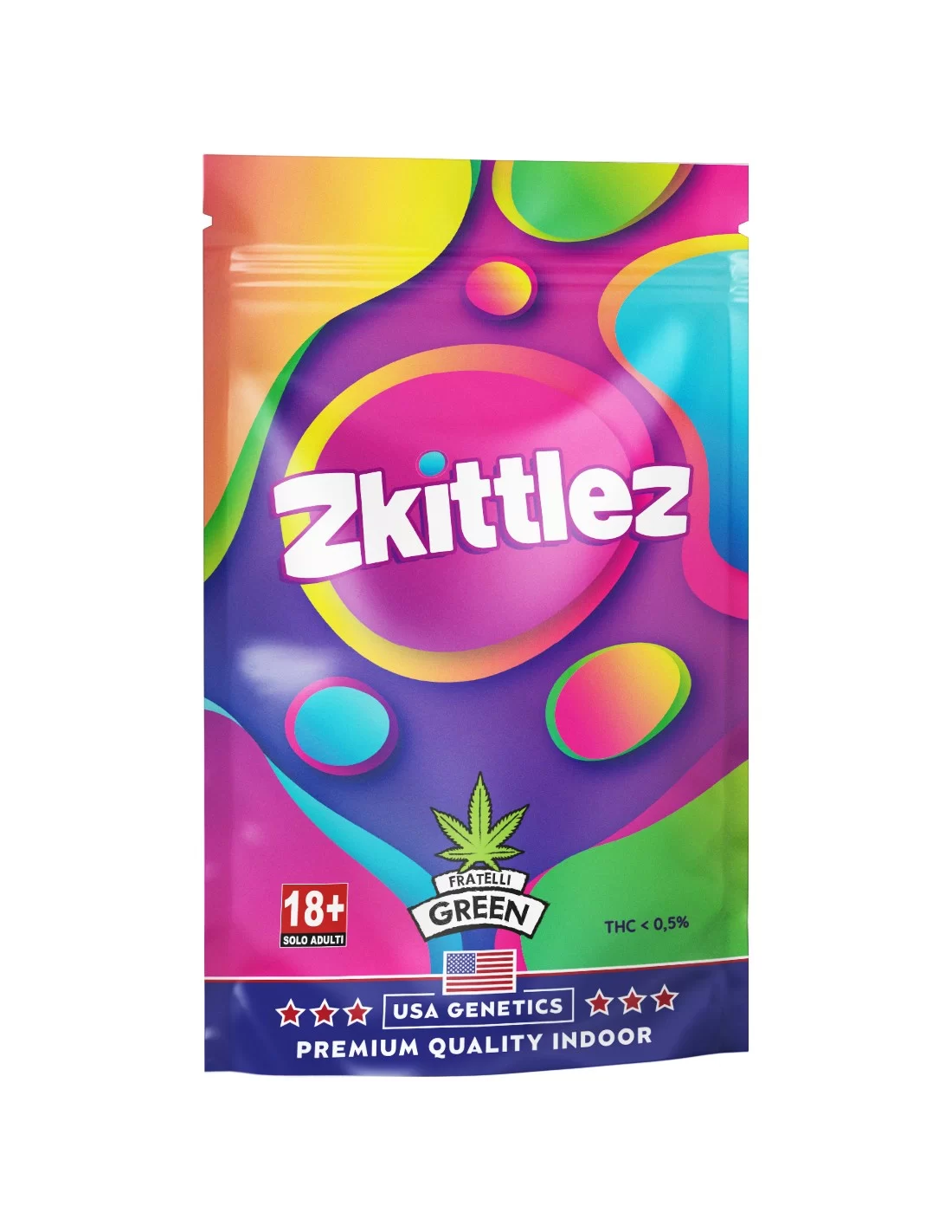 Señoras y señores, la Zkittlez: una de las variedades de cannabis más populares entre los entendidos. Su cepa original procede del extranjero, de una de las regiones más soleadas de la bellaCalifornia. Ganadora de varios premios en concursos cannábicos.