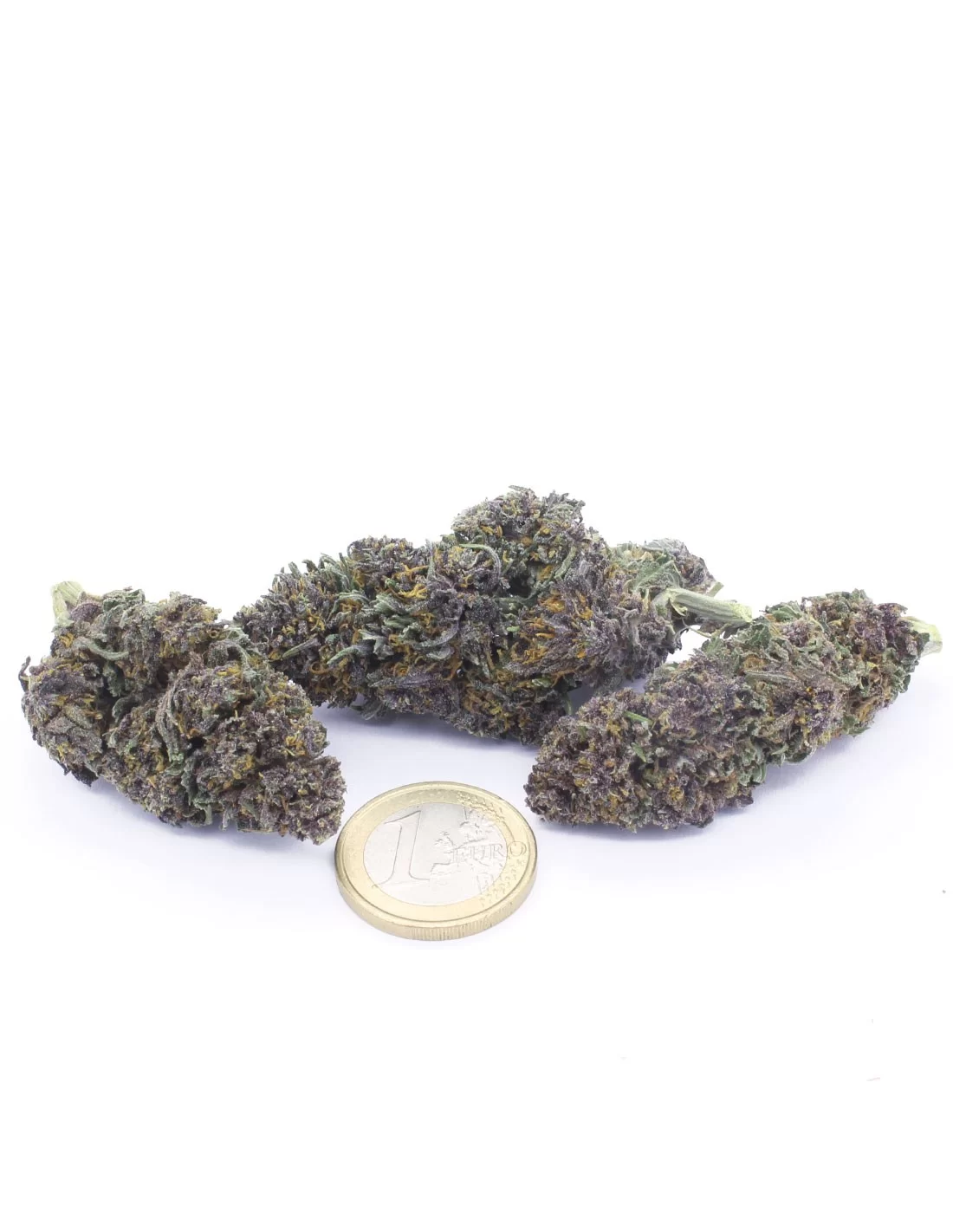 Notre Purple Queen est un cannabis unique, tant par son aspect que par son arôme. Ses bourgeons sont d'un violet foncé et sont cultivés en serre. Les fleurs sont incomparables, tant par leur couleur que par leur parfum, et c'est ce qui frappe au premier coup d'œil. Les arômes sont également caractéristiques, avec des senteurs rappelant les baies et la lavande et de légères notes de menthe.
