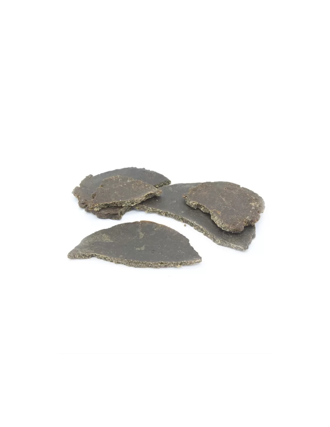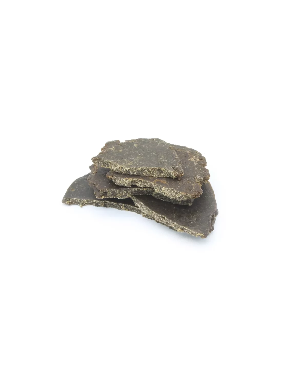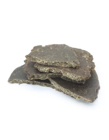 Questo Super hash si presenta scuro, sottile,molto morbido e lucido all'esterno. Spezzandolo, rivelerà delle striature dorate interne.