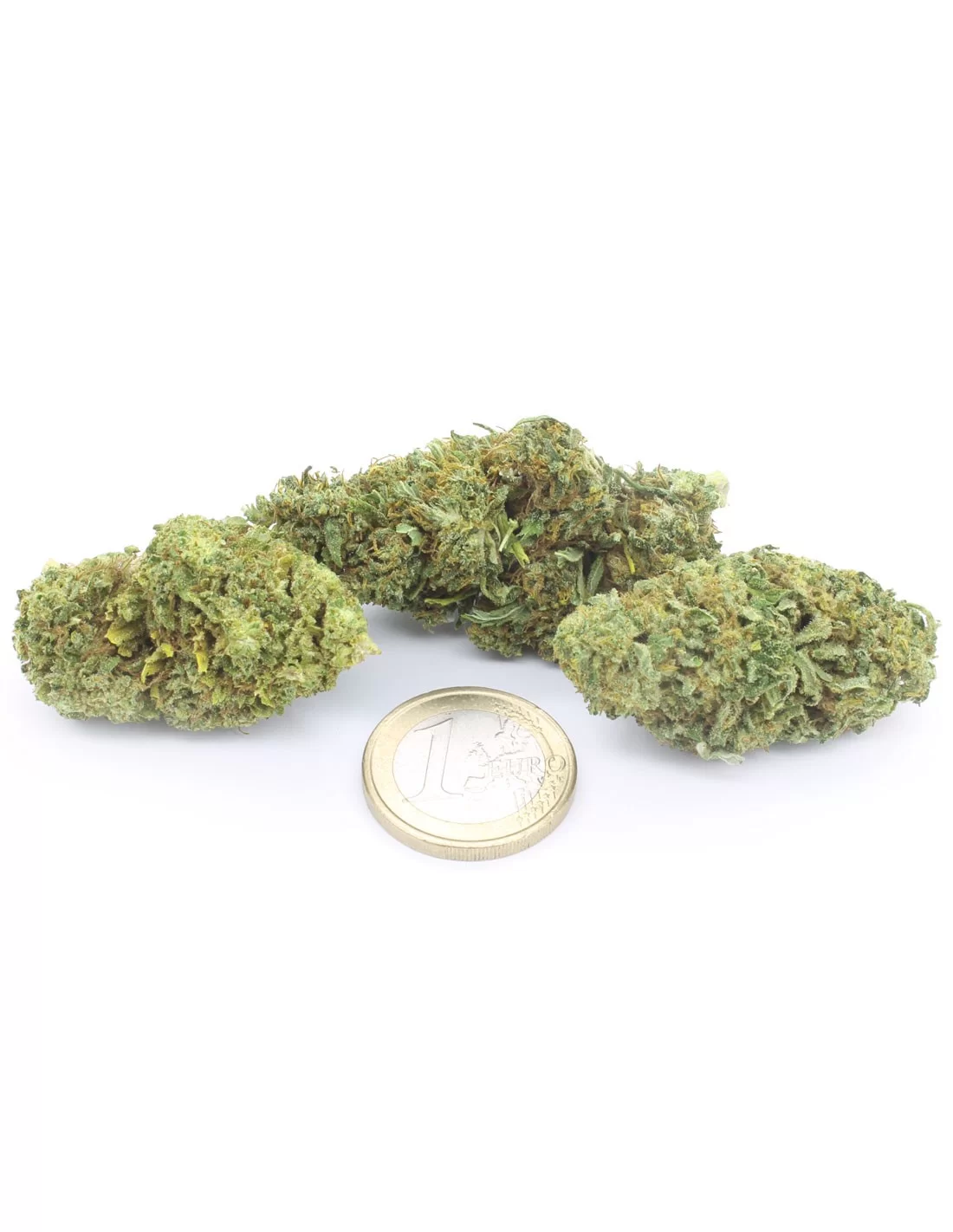 Tra le nostre varietà più golose, la Strawberry possiede fiori di piccola/media grandezza ma incredibilmente densi, con una pigmentazione di un verde vivace che dona risalto ai suoi numerosi pistilli ambrati.