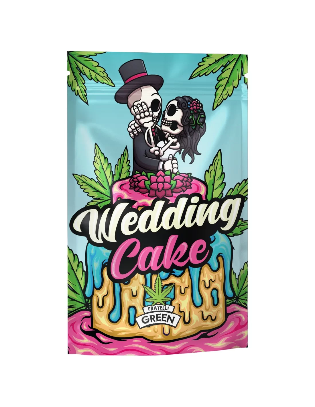 Coltivata in serra col supporto di lampade HPS a supporto della fioritura, i fiori della nostra Wedding Cake CBD, sono molto compatti e croccanti.